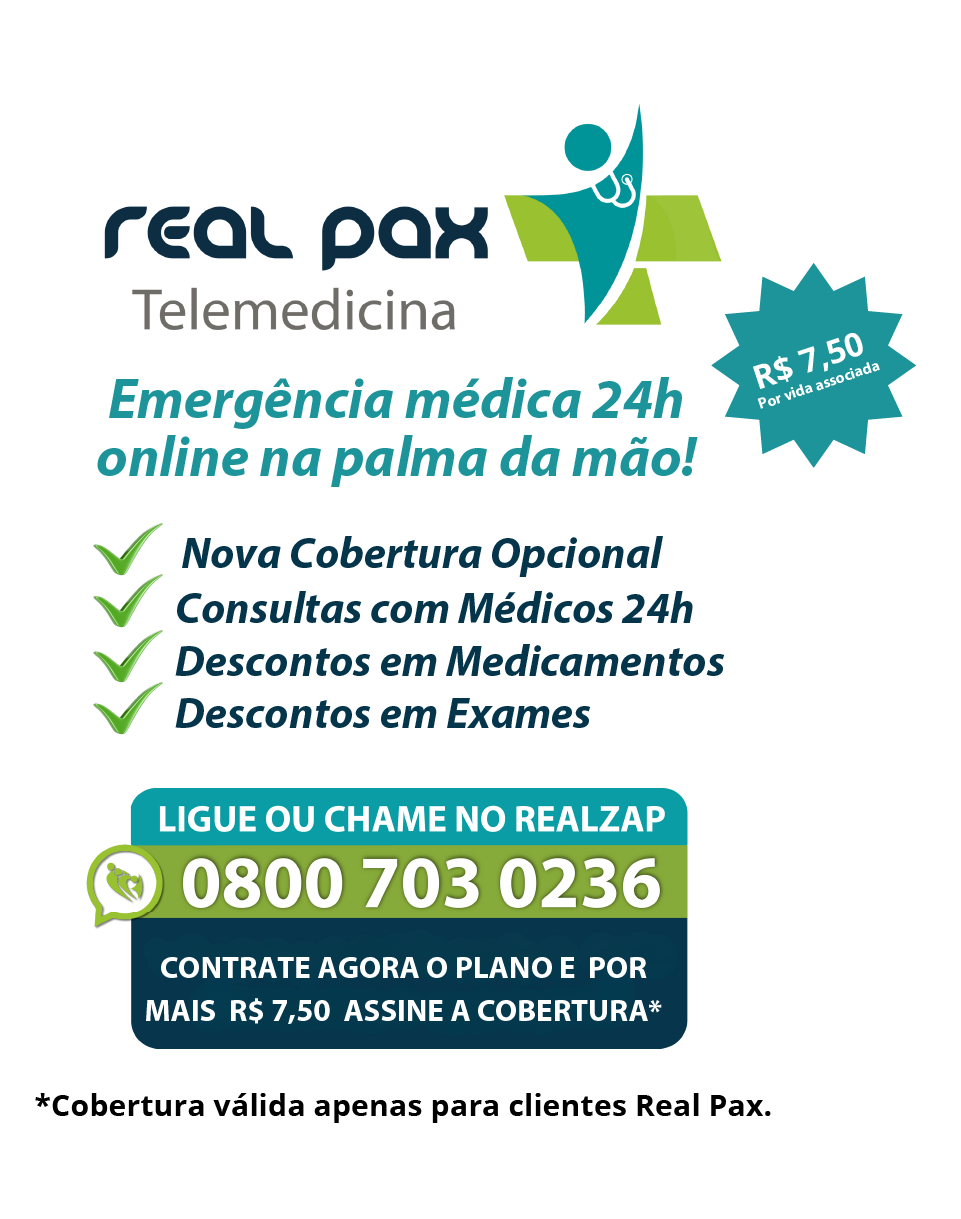 Comprometida em oferecer cada vez mais benefícios que promovem cuidado, acolhimento e praticidade, ampliamos seu atendimento com uma novidade: o opcional Cobertura Real Pax Telemedicina, uma das principais plataformas de saúde digital do país.